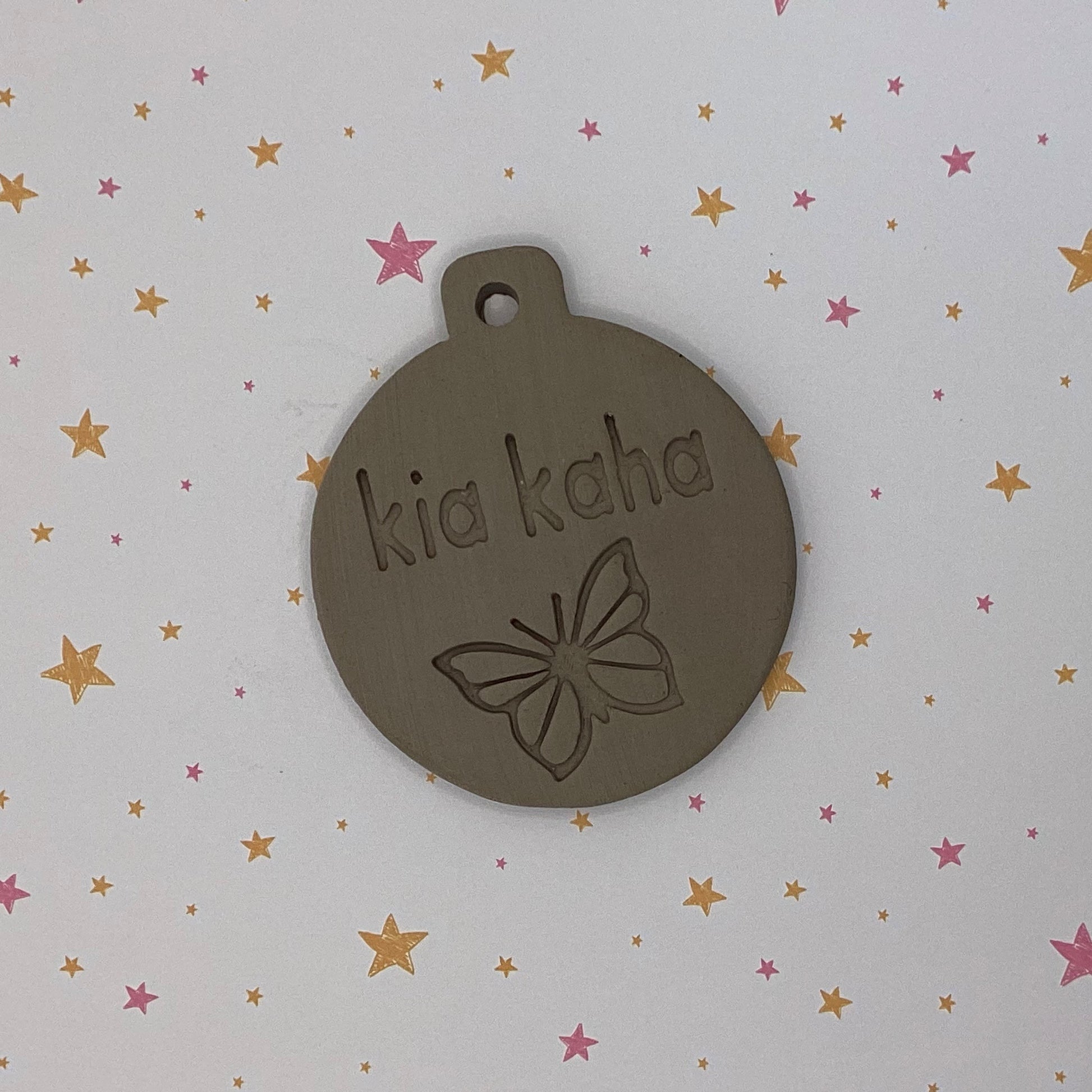 Standard cutting size is a 7cm circle with a 1cm tab at the top, with plenty of room to make a hanging hole if you want to.